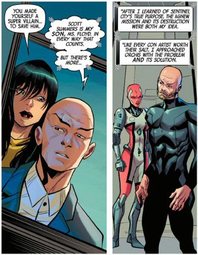 So now we find out that Charles’ original reaching out to Orchis was all a con, designed to make him the apparent villain (and sacrificial mutant offering) in the eyes of the world for killing innocent humans. Except those weren’t actual humans now: