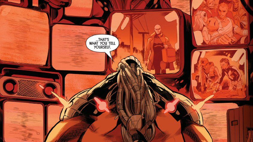 Charles is really after the last surviving Cerebro device for his own purposes, leaving them to fail in their worthwhile mission. Our mysterious narrator is quite on point. But who this is mysterious narrator? From the closing panels on the heist part of this story: