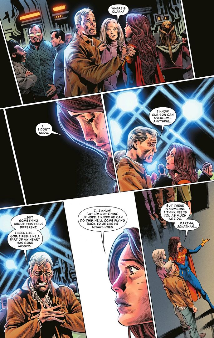 The next issue ended on an interesting perspective, as Lois reunited with the Kents. From Superman Vol 6, issue #35 (2026), by Williamson with art by Barrows, Eber Ferreira, and Julio Ferreira: